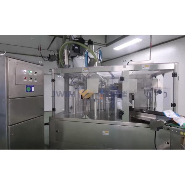 The machine is rotary structure, eight working positions, wide range of packaging, can package liquid, powder, particles, solids, materials, just according to different materials choose different metering filling device can be. The machine can change the specification of the bag quickly, the width of the automatic feeding device can be easily and quickly adjusted by adjusting the handle; Testing machine in the absence of packaging or packaging not open the filling device is not filled, heat sealing device, sealing, so as to avoid wasting packaging materials and raw materials.